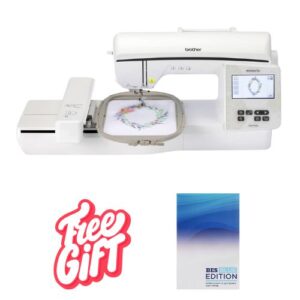 A combo machine with plenty to offer, the Brother Innov-is NQ3550W has luxurious features such as 258 built-in embroidery designs, 291 built-in stitches, and, when connected to a wireless network, the ability to send files wirelessly to your machine via Design Database Transfer1. See all your designs on the clear 3.67″ color LCD touch screen display with an easy user interface. Here you can do on-screen editing, including letter editing, resizing, rotating, repositioning, drag and drop, and combining designs. Combined with a generous needle to arm 8.3″ x 4.1″ workspace, with the NQ3550W, there is no telling what you’ll create next.