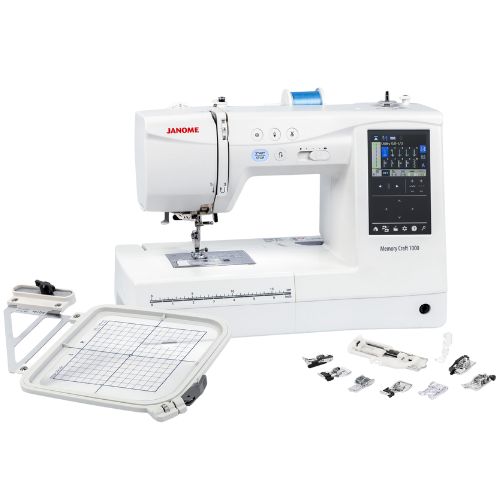 Sew with confidence using the Memory Craft 1000’s advanced sewing capabilities. Enjoy 300 creative stitches, beautifully balanced buttonholes, and superior fabric control with Janome’s 7-piece feed dog and SFS+ system. Designed to simplify your workflow, it includes features like an easy-lift magnetic needle plate, automatic bobbin winder, snap-on presser feet, bright LED lighting, and intuitive memory functions—helping every stitch look its best.