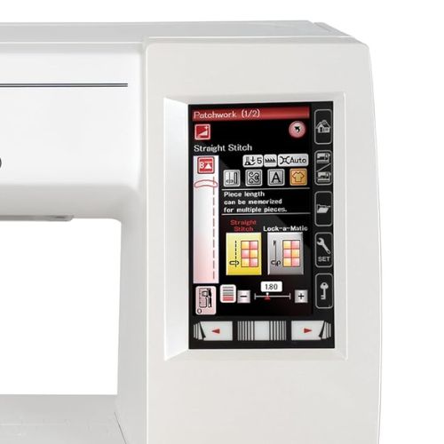 The Janome Memory Craft 9850 Limited Edition’s full color LCD touchscreen features the new easy navigation that allows your to quickly change your setting. Here you will find your menu with all of the stitch categories, and tucked away neatly are the stitch width and length adjustments, as well as the presser foot pressure and thread tension.